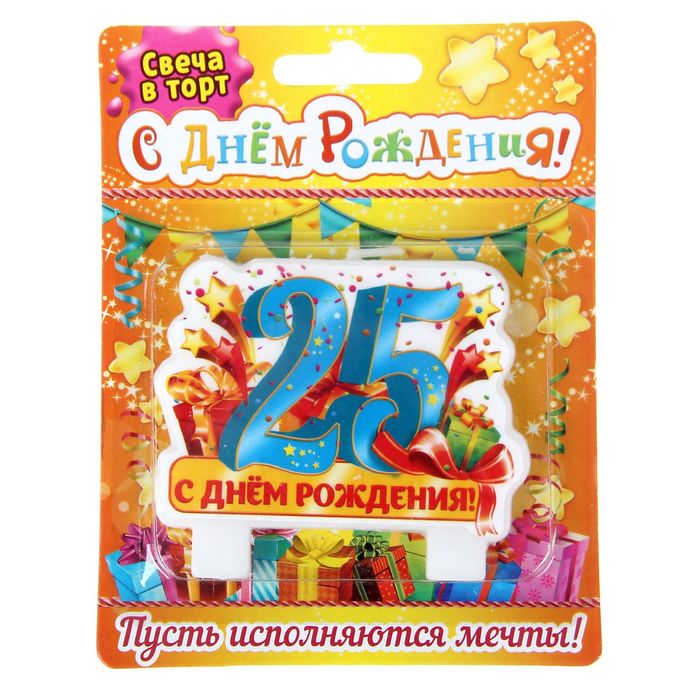 Свеча в торт серия Юбилей "С Днём рождения" 25 лет