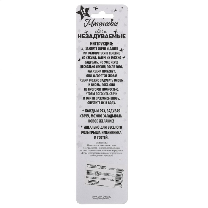 Свечи незадуваемые 12 шт "Мечты сбываются"