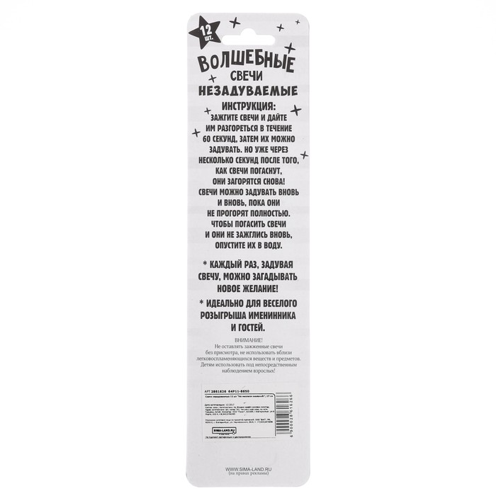 Свечи незадуваемые 12 шт "На миллион желаний!"