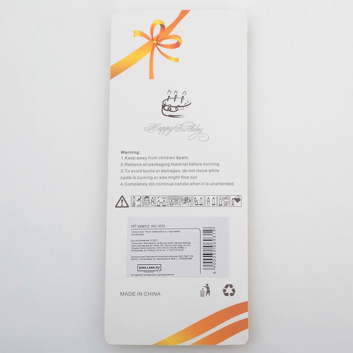 Свечи в торт "Неон" , 14см, 6шт с подставкой, фиолетовый — непременный атрибут праздника, который бывает раз в году! Он обязательно поднимет настроение виновнику торжества.