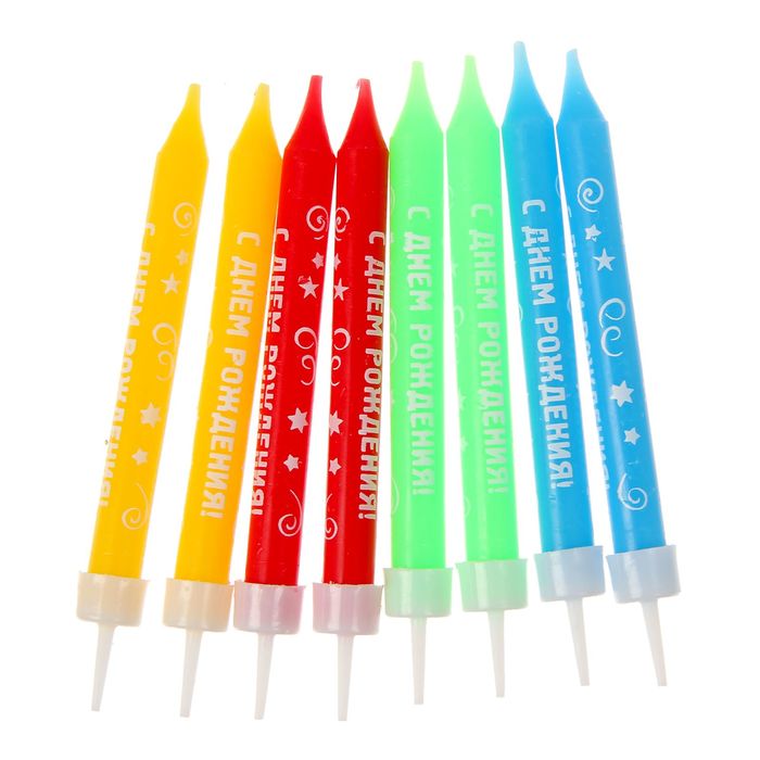Свечи в торт "С Днем рождения", (набор 8 шт)