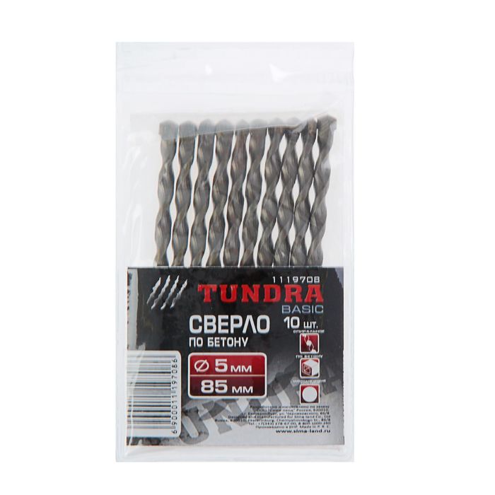 Сверло по бетону TUNDRA basic, цилиндрический хвостовик, 5 х 85 мм, 10 шт.