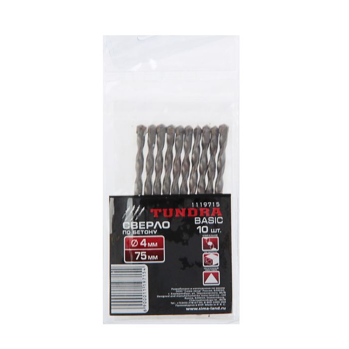 Сверло по бетону TUNDRA basic, трехгранный хвостовик, 4 х 75 мм, 10 шт.