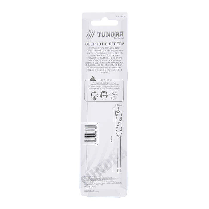 Сверло по дереву TUNDRA, X-тип, 18 x 165 мм, шестигранный хвостовик