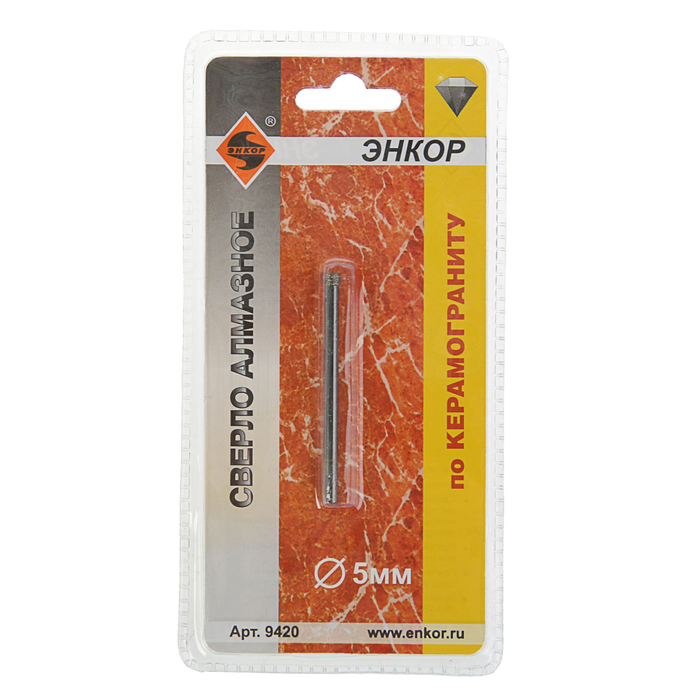 Сверло по керамограниту "ЭНКОР", 5 мм, алмазное