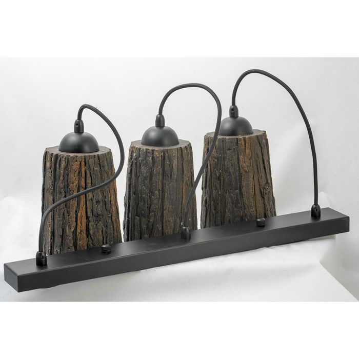 Плафоны стилизованы под дерево и закреплены на металлическом основании. В корпусе находится высококачественная проводка. Она соответствует европейскому стандарту безопасности, не боится перепадов напряжения и обеспечивает долговечную эксплуатацию светильника.