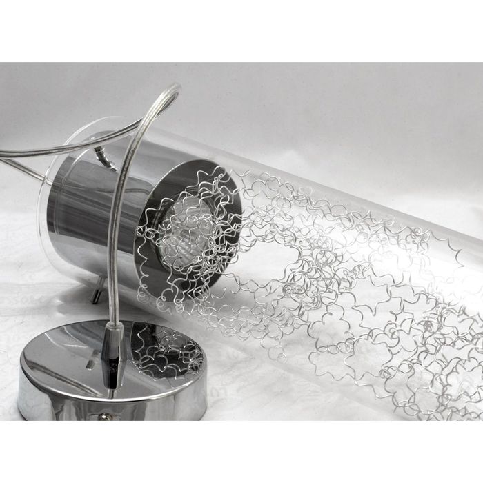 Прозрачный плафон смонтирован на металлическом основании, которое блестит при попадании на него света. В корпусе находится высококачественная проводка. Она соответствует европейскому стандарту безопасности, не боится перепадов напряжения и обеспечивает долговечную эксплуатацию прибора.