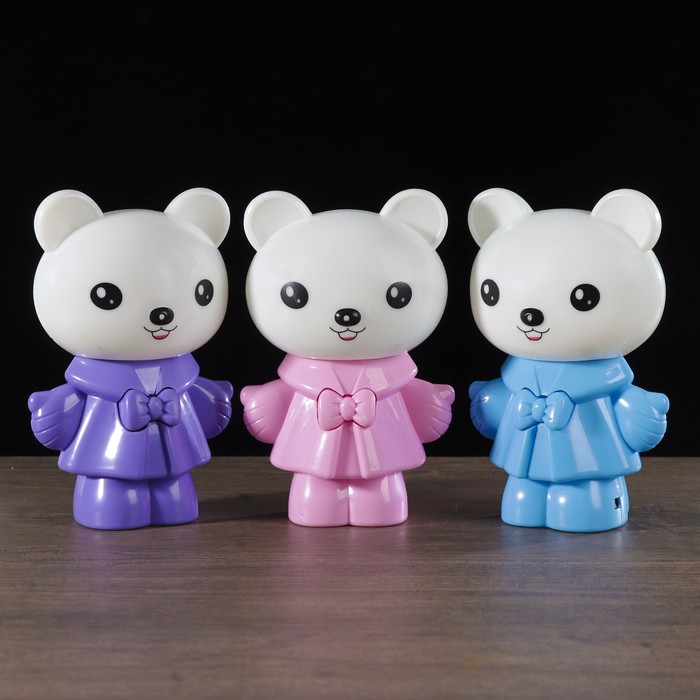 Светильник "Мишка в платьице" LED АКБ (USB в компл.) МИКС 10х7х17см — одна из важных деталей освещения детской или спальной комнаты. Этот небольшой предмет удивит вас своим дизайном и порадует мягким рассеянным светом. Он пригодится в семье, где есть маленькие дети: приглушённый свет не позволит испугаться ребёнку, если он проснулся ночью.