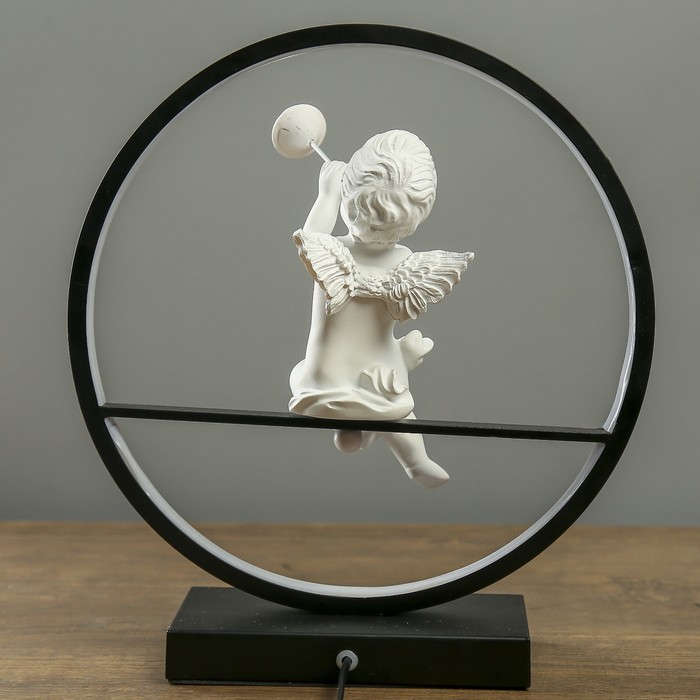 Светильник настольный "Ангел с трубой" 20W 30х24,5х14 см — одна из важных деталей освещения детской или спальной комнаты. Этот небольшой предмет удивит вас своим дизайном и порадует мягким рассеянным светом. Он пригодится в семье, где есть маленькие дети: приглушённый свет не позволит испугаться ребёнку, если он проснулся ночью.