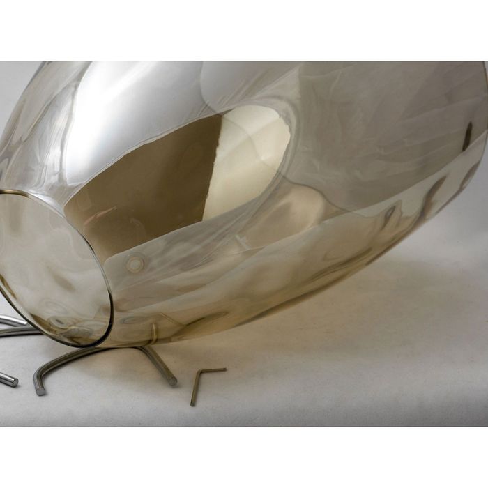 Прозрачный плафон смонтирован на металлическом основании, которое блестит при попадании на него света. В корпусе находится высококачественная проводка. Она соответствует европейскому стандарту безопасности, не боится перепадов напряжения и обеспечивает долговечную эксплуатацию прибора.