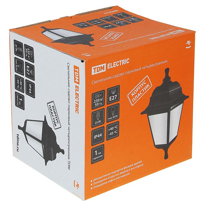 Светильник TDM, садово-парковый, четырёхгранник, подвесной, чёрный, SQ0330-0706