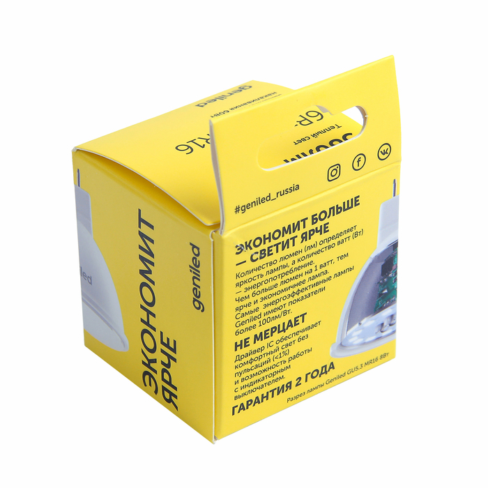 Светодиодная лампа Geniled, GU5.3, MR16, 6 Вт, 180-240 В, 2700 К, теплый белый