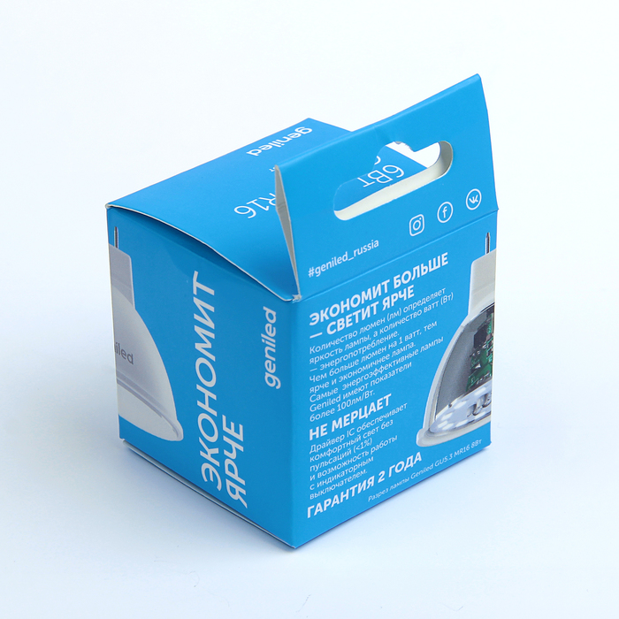 Светодиодная лампа Geniled, GU5.3, MR16, 6 Вт, 180-240 В, 4200 К, дневной свет