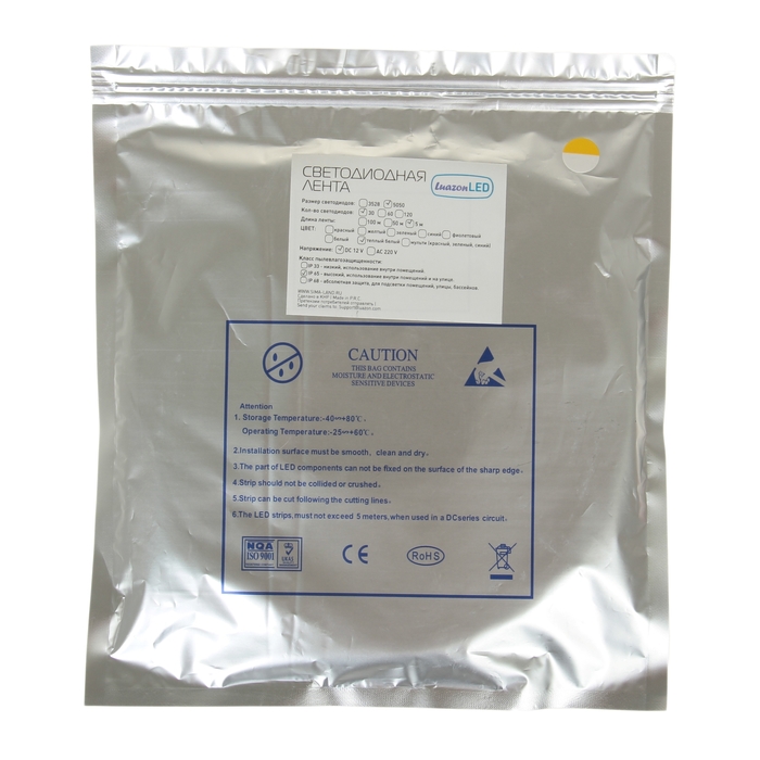 Светодиодная лента 12В, SMD5050, 5 м, IP65, 30 LED, 7.2 Вт/м, 14-16Лм/1 LED, DC, ТЁПЛЫЙ БЕЛЫЙ