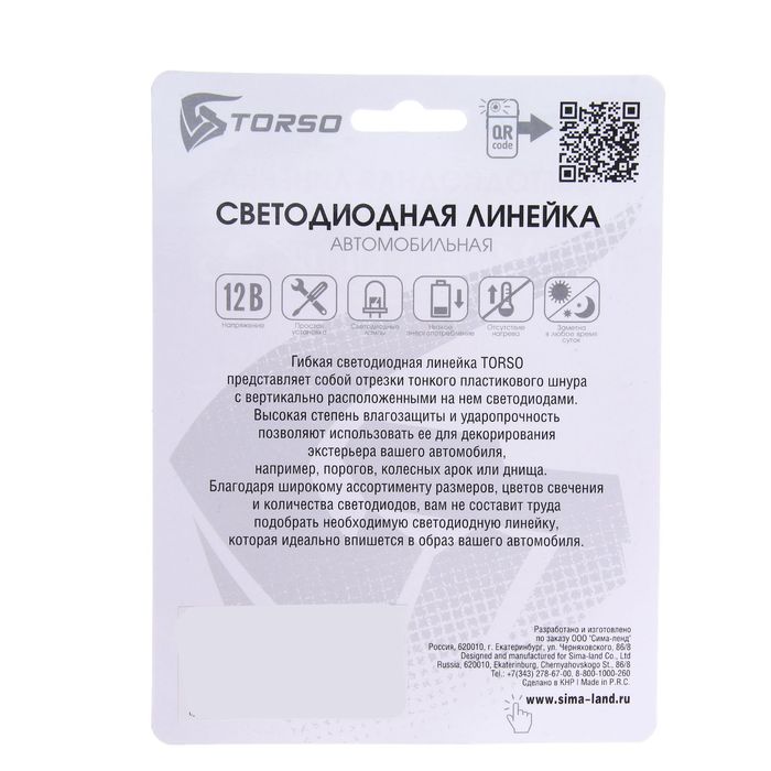 Светодиодная линейка TORSO, 30LED-SMD5050, 30 см, 12 В, IP65, 7.2 Вт, свет красный