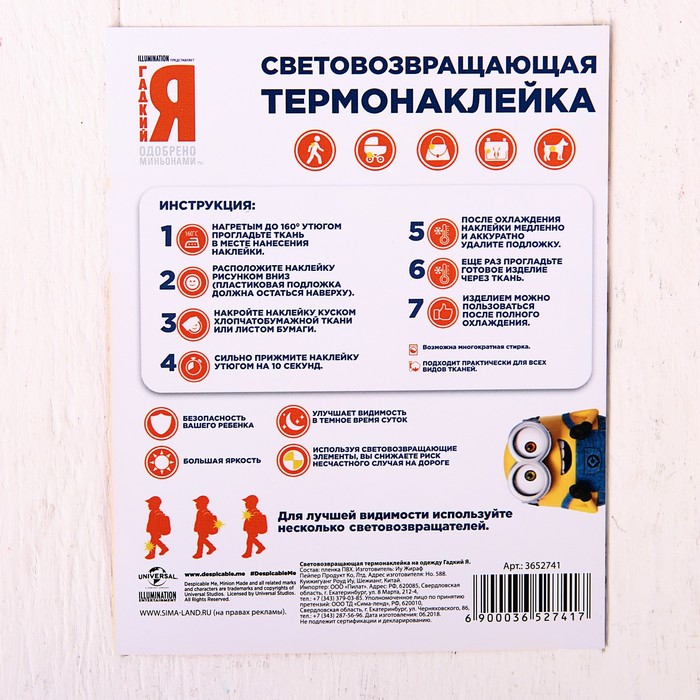 Светоотражающая термонаклейка на одежду, Гадкий Я