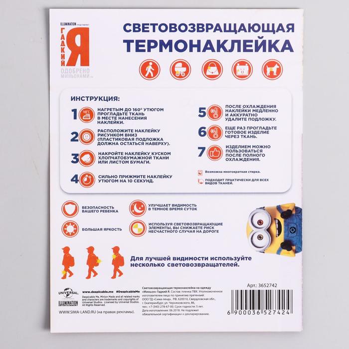 Светоотражающая термонаклейка на одежду "Миньон", Гадкий Я