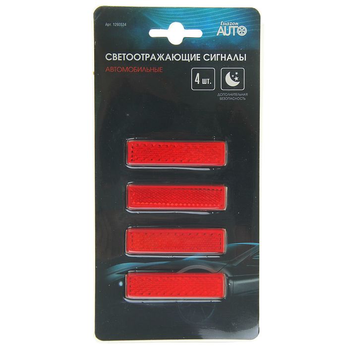 Лёгкая установка и отсутствие источников питания делают автомобильные светоотражающие сигналы незаменимыми помощниками для дополнительного обозначения транспортного средства в тёмное время суток. Изделия крепятся при помощи двусторонней клейкой ленты (в комплекте).