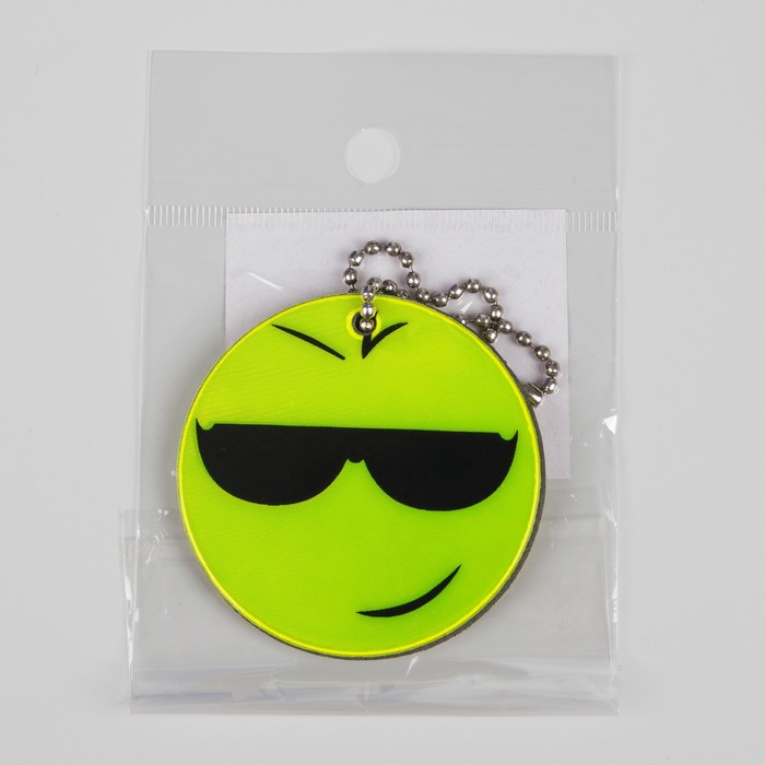 Светоотражающий элемент "Смайлик в очках", двусторонний, d=5,3см, на цепочке