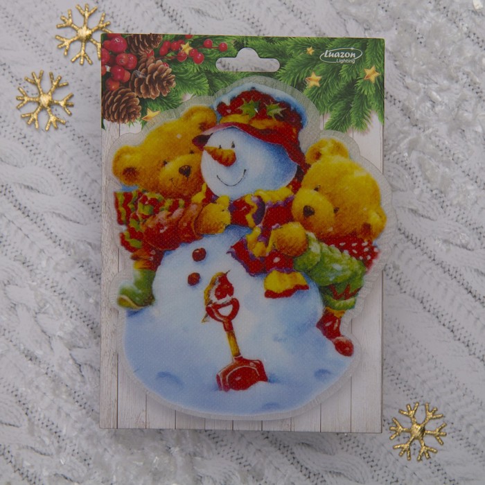 Световая картинка на прищепке "Снеговичок"(батарейки в комплекте), оптоволокно, 1 LED, RGB