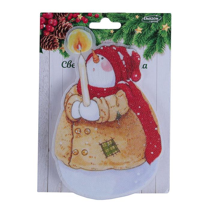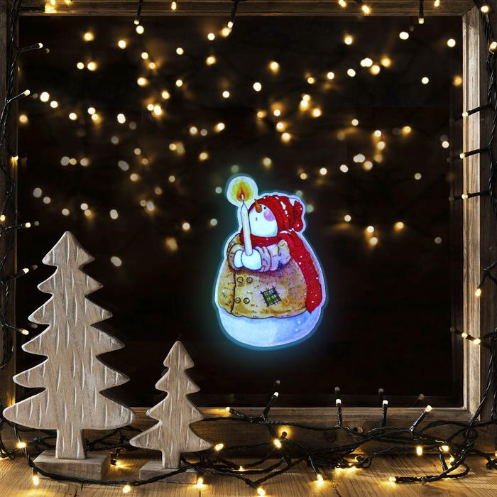 Световая картинка на присоске "Снеговик рождественский"(батарейки в комплекте), 1 LED, RGB