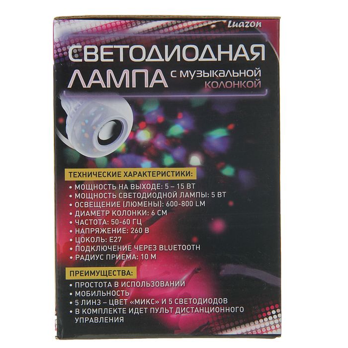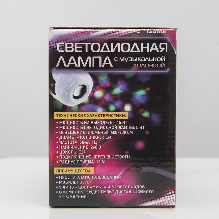 Светодиодная лампа с музыкальной колонкой создаст на торжественном мероприятии магическую атмосферу. Устройство станет прекрасным дополнением на любом празднике или вечеринке в клубе и дома. Установите музыкальный прибор вместо обычной лампочки, и помещение сразу же наполнится яркими световыми лучами и любимыми мелодиями.