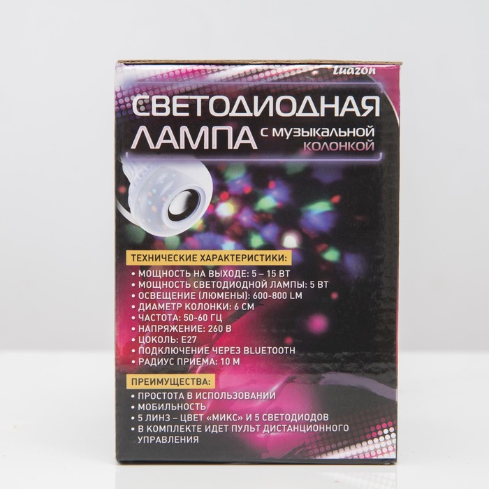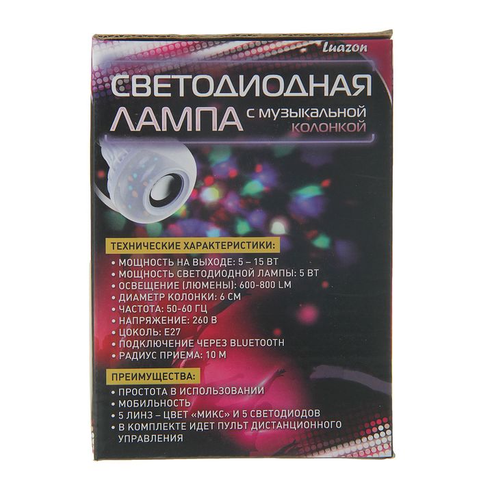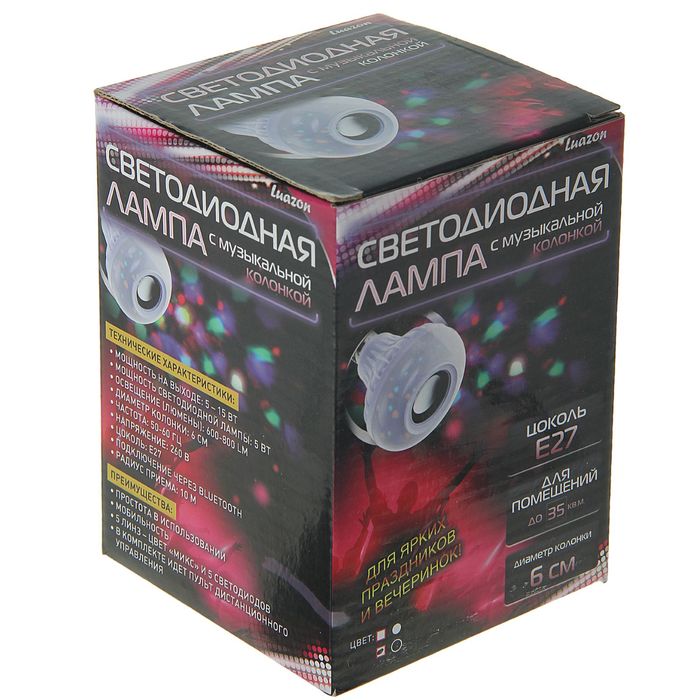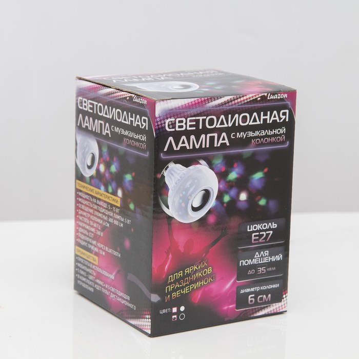 Светодиодная лампа с музыкальной колонкой создаст на торжественном мероприятии магическую атмосферу. Устройство станет прекрасным дополнением на любом празднике или вечеринке в клубе и дома. Установите музыкальный прибор вместо обычной лампочки, и помещение сразу же наполнится яркими световыми лучами и любимыми мелодиями.
