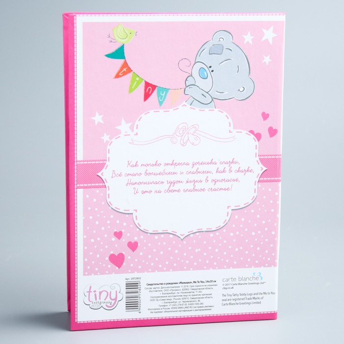Свидетельство о рождении "Малышка", Me To You поможет организовать ваше рабочее пространство и время. Востребованные предметы в удобной упаковке будут всегда под рукой в нужный момент.