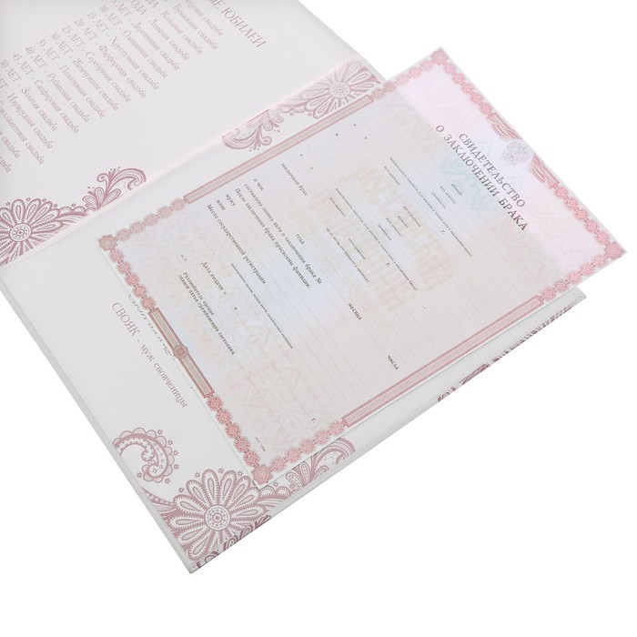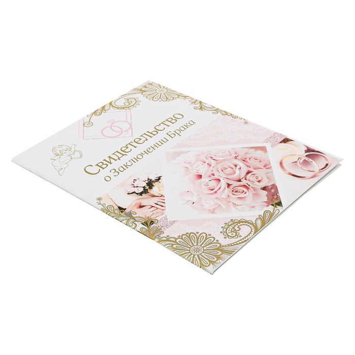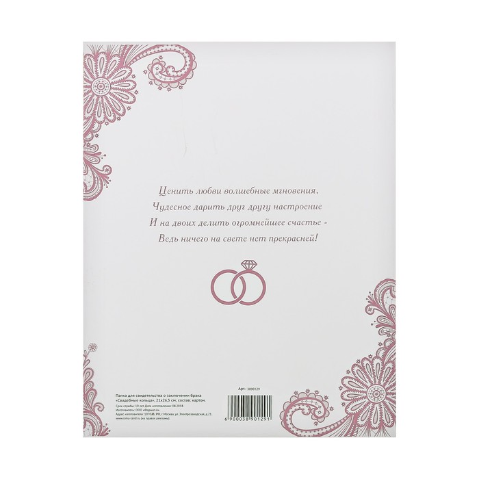 Свидетельство о заключении брака "Свадебные кольца", розовая, 21 х 26,5 см