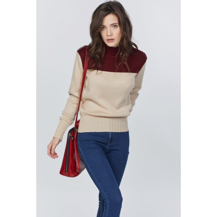 Свитер женский, размер 46, цвет бордо/бежевый 9222-05