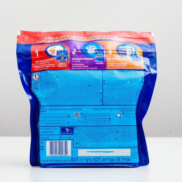 Таблетки для мытья посуды в посудомоечных машинах FINISH Quantum Max Анти-жир, 54 шт