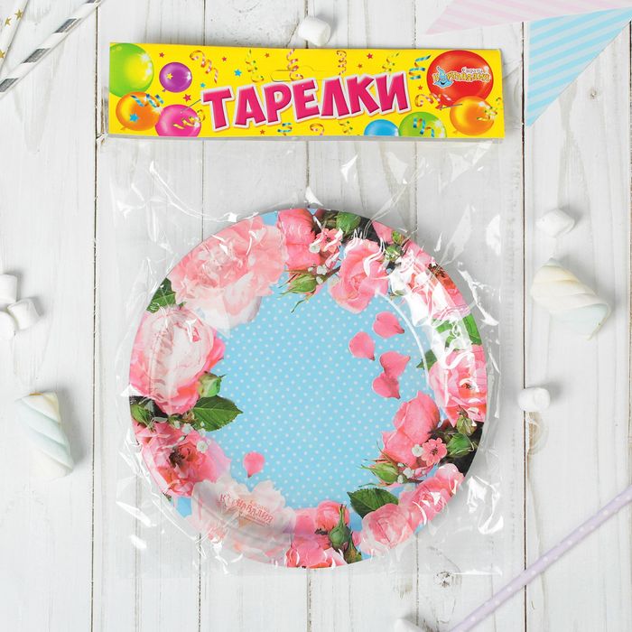 Тарелка бумажная "Розы", набор 6 шт., 18 см
