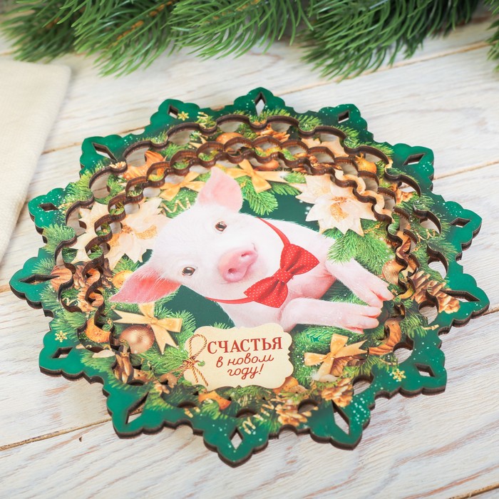 Тарелка деревянная "Счастья в НГ", d=18 см