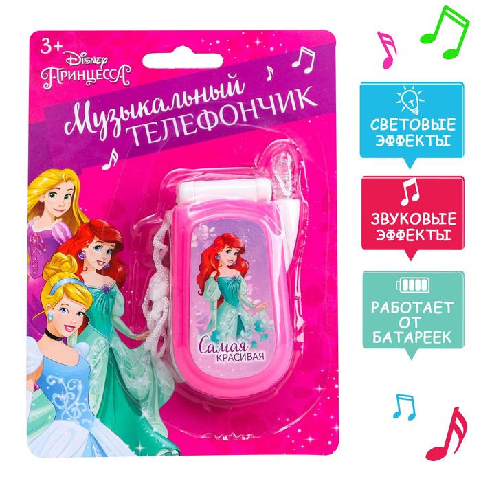Телефончик "Поверь в мечту" Принцессы, звук, свет, батарейки, МИКС