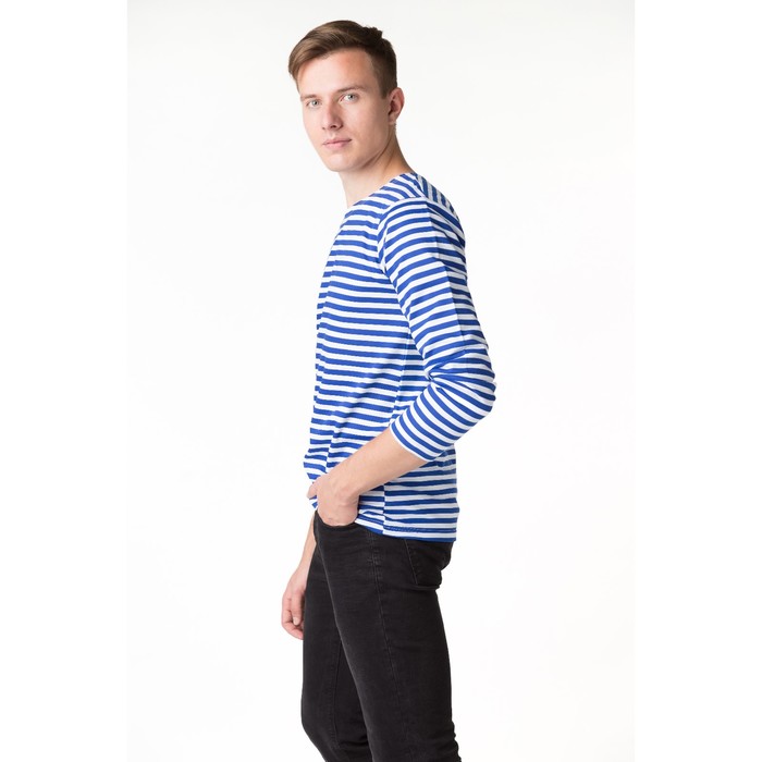 Тельняшка мужская синяя, размер 48 — выбор стильных людей. Вещь изготовлена из качественных и безопасных материалов, а над дизайном работала команда настоящих профессионалов.