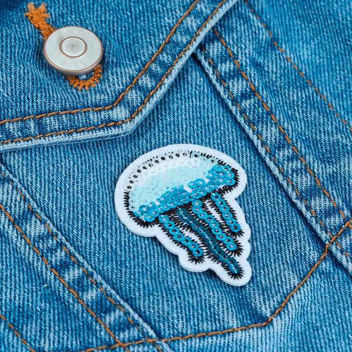 Термоаппликация "Медуза", с пайетками, 5*4см, цвет голубой