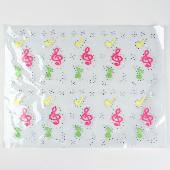 Термоаппликация со стразами "Ноты", 14*7см, 10шт на листе