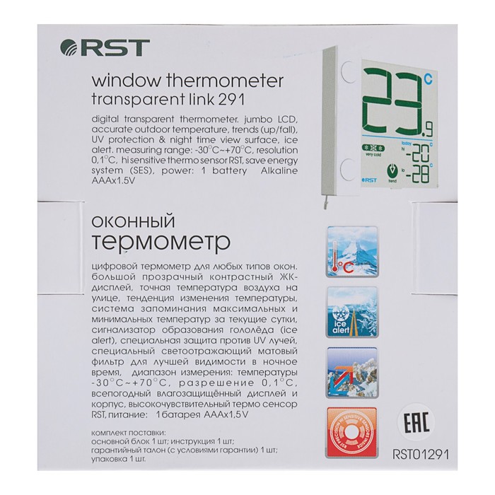 Термометр RST 01291, цифровой, уличный, на липучке -30-+70 C