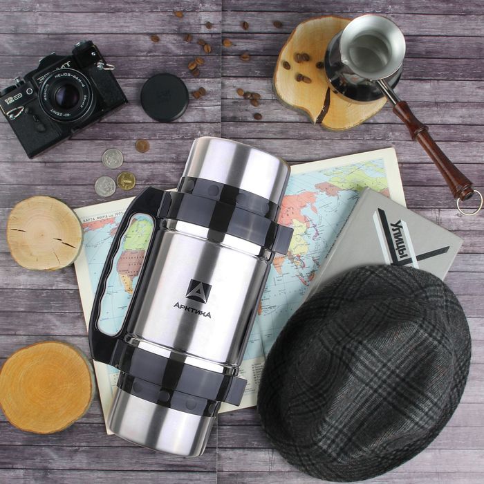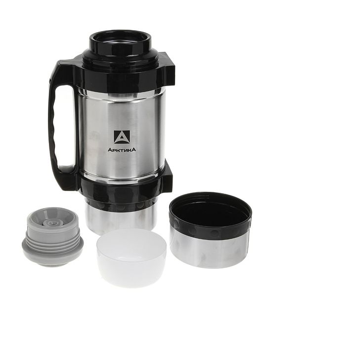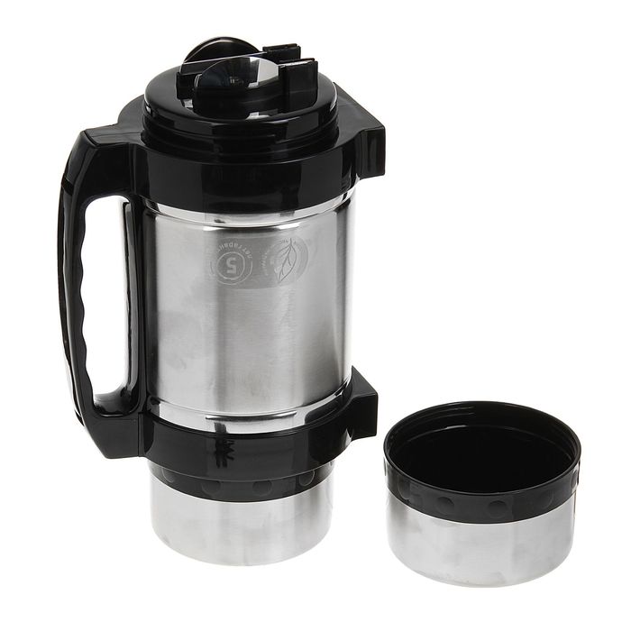 Перед вами универсальный термос, который подходит для напитков и горячих блюд. Пробка с термоизолятором позволит наливать напиток без полного её откручивания. Это позволит избежать термопотерю напитка при полном открытии термоса. В набор входят два стаканчика и чайные ложечки.