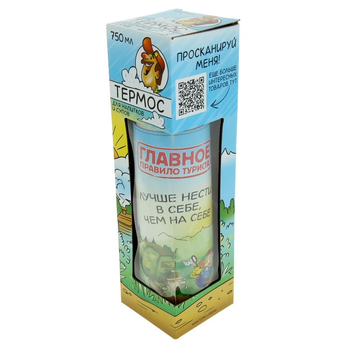 Термос "Лучше нести в себе, чем на себе" 750 мл станет незаменимым помощником для активных людей, ведь он обладает множеством достоинств. Лёгкий и прочный, он сохраняет изначальную температуру жидкости долгое время, а красочный дизайн разработан специально для активных людей.