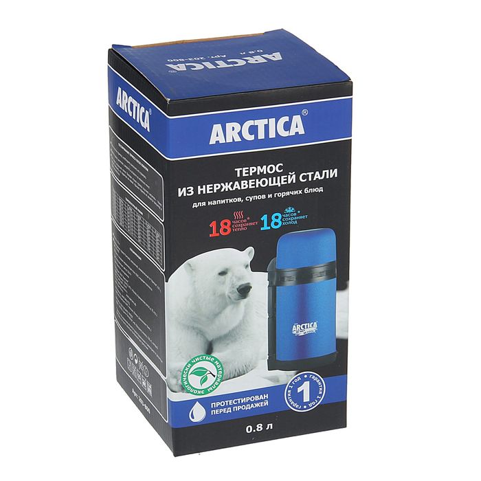 От качества посуды зависит не только вкус еды, но и здоровье человека. Термос универсальный «Арктика», бытовой, вакуумный, 0.8 л, синий — товар, соответствующий российским стандартам качества. Любой хозяйке будет приятно держать его в руках. С нашей посудой и кухонной утварью приготовление еды и сервировка стола превратятся в настоящий праздник.