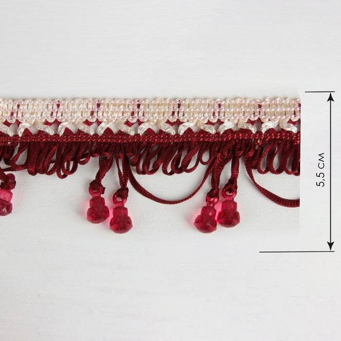 Тесьма "Колокольчики", 12±1м, цвет бордовый/бежевый