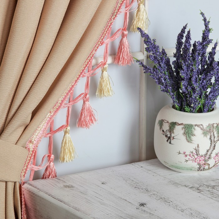 Тесьма украшает шторы и делает интерьер более уютным. Мягкие кисточки дополнят текстиль и добавят в конструкцию динамики. Обработайте изделием портьеру, скройте за ним швы или декорируйте текстильный подхват.