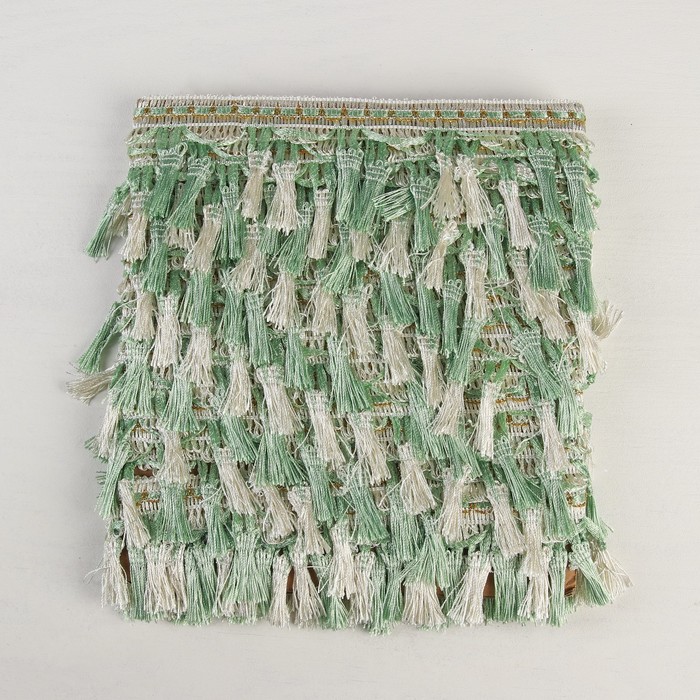 Тесьма с кистями, 7см, 12±1м, цвет белый/зелёный/золотой