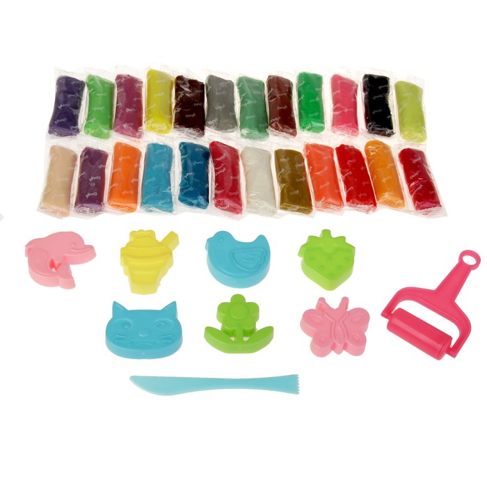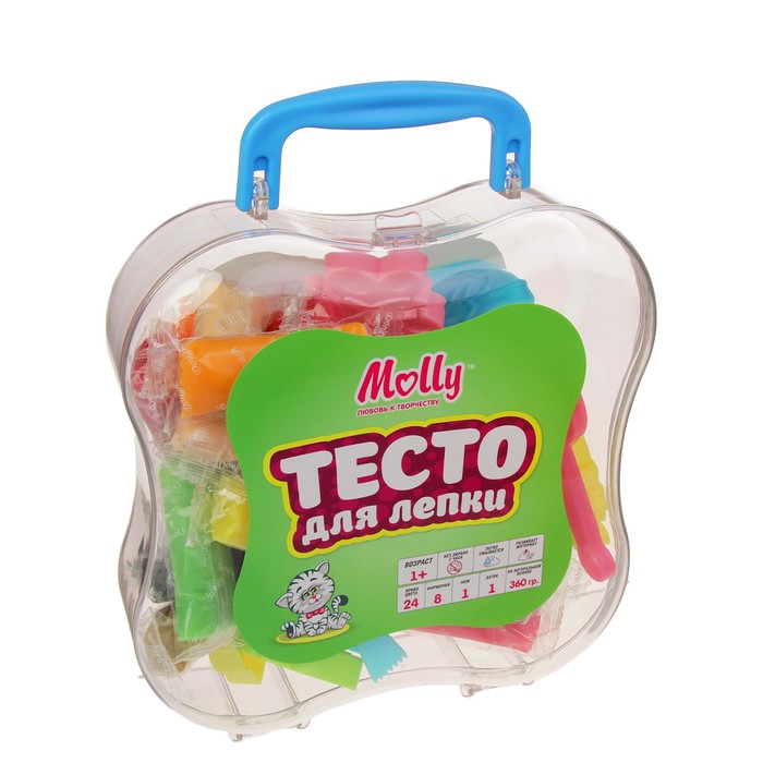 Тесто для лепки 24 цв 360 гр + 8 формочек, нож, каток M2334