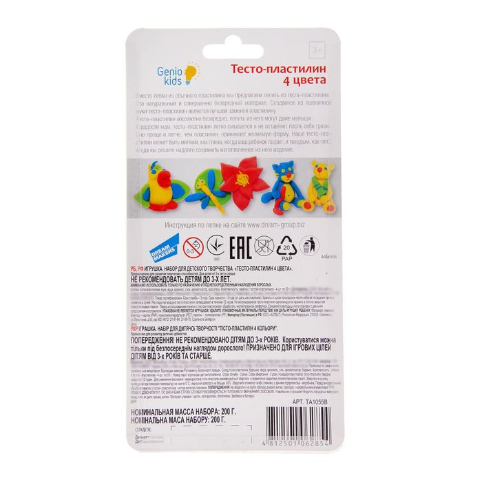 Тесто для лепки — это натуральный и безопасный продукт, который подходит для малышей. Оно очень мягкое и пластичное, крохе не придётся прикладывать лишние усилия при создании своих шедевров. Масса не прилипает к рукам и не оставляет пятен.