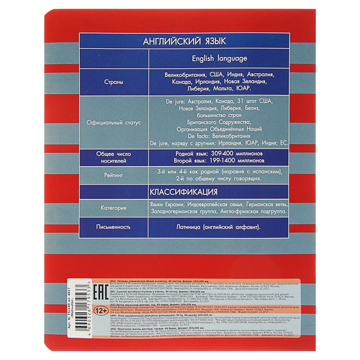 Тетрадь 40 листов клетка "Motivator - английский язык", со справочным материалом, обложка мелованный картон, выборочный лак поможет организовать ваше рабочее пространство и время. Востребованные предметы в удобной упаковке будут всегда под рукой в нужный момент.