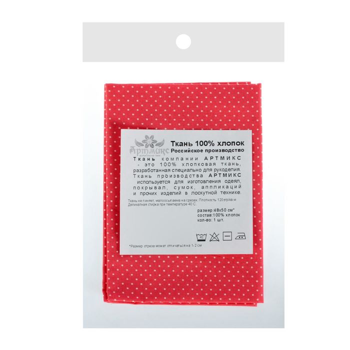 Ткань для пэчворка "Мелкий горошек", 48х50см, 120г/кв.м, цвет красный