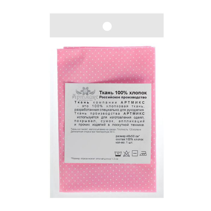 Ткань для пэчворка "Мелкий горошек", 48х50см, 120г/кв.м, цвет розовый