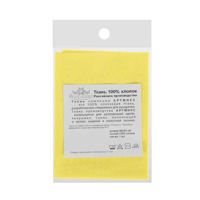 Ткань для пэчворка "Мелкий горошек", 48х50см, 120г/кв.м, цвет жёлтый